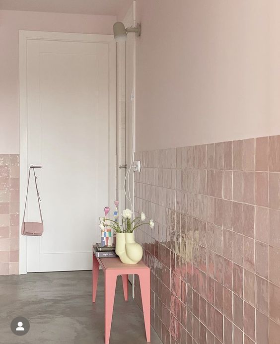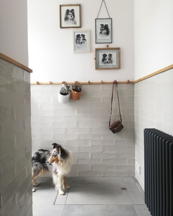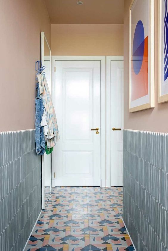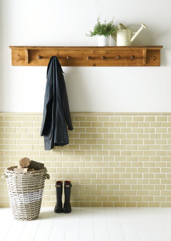 Een goede manier om de hal direct karakter te geven, is door te spelen met kleur en patroon. Kies een gedurfd behang voor de langste/grootste muur om meteen een statement te maken. Het maakt niet uit als hier ook voor een deel jassen komen te hangen of dat je er nog een spiegel bevestigd. Ben je niet zo van behang? Een tegellambrisering kan dan ook een mooie oplossing zijn. Let op dat dit wel wat permanenter is dan behang. Maar zeker op een tegel- of gietvloer kan dit erg mooi staan!