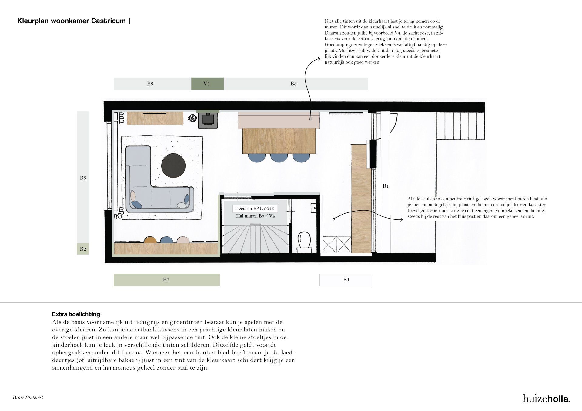 Omdat je met jonge kinderen misschien niet direct alles nieuw wilt is bijv. de hoekbank uit het vorige huis meegenomen tot de jongste wat minder in de 'knoei' leeftijd zit. Door het advies met duidelijke uitleg te bundelen in een fysiek exemplaar kunnen de bewoners stapsgewijs hun woning steeds meer upgraden, zonder het overzicht uit het oog te verliezen. En om de unieke mogelijkheden van een drive-in woning te laten zien staat staat er ook een schets indeling klaar voor over een jaar of 10. Wanneer de 3 kids ouder zijn en de ouders makkelijker de woonkamer en leefkeuken over 2 verdiepingen kunnen verdelen. Zo kunnen de volwassenen bijv. lekker borrelen in de leefkeuken aan de tuin, terwijl de kids boven in de woonkamer kunnen spelen, gamen en hangen.