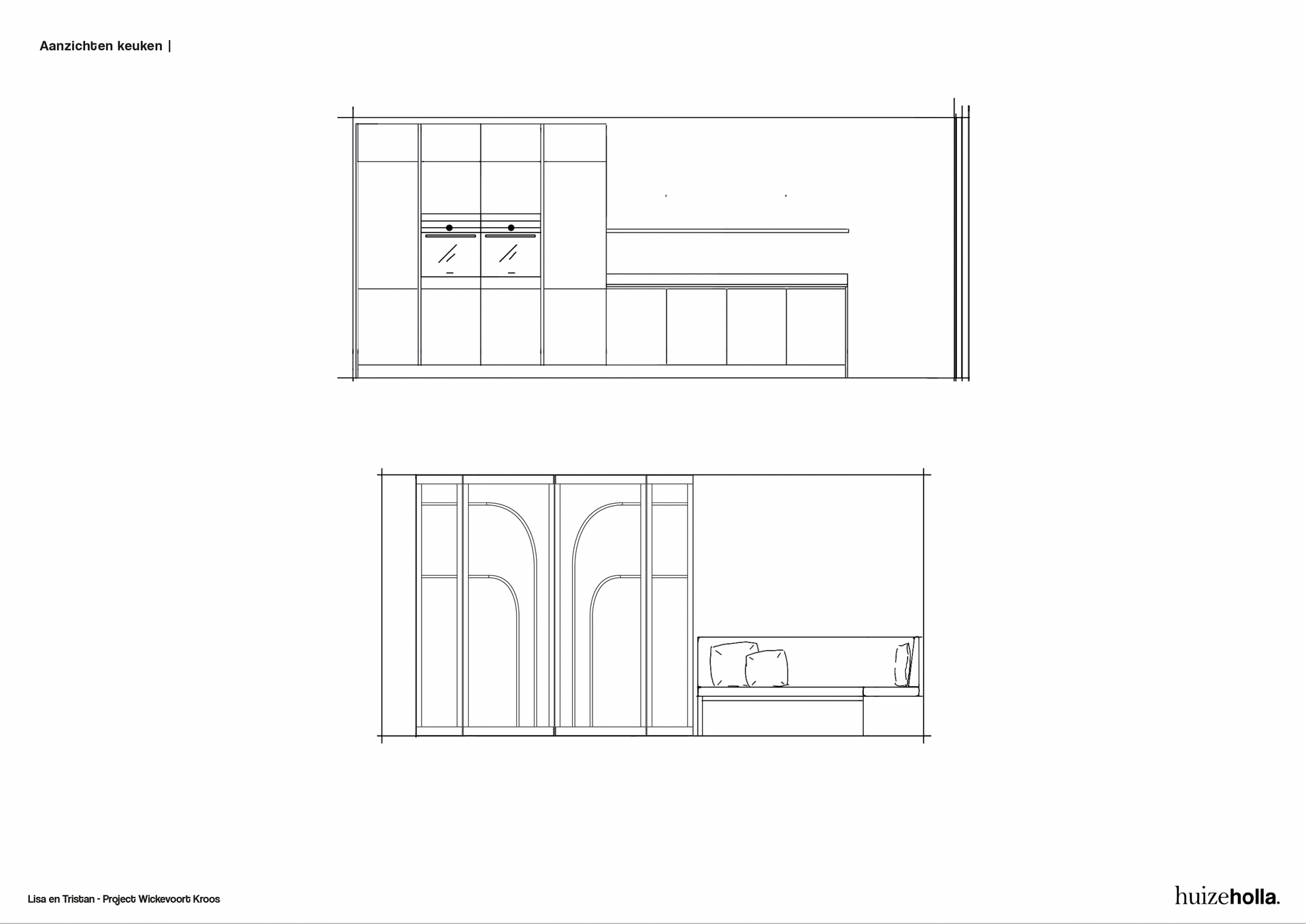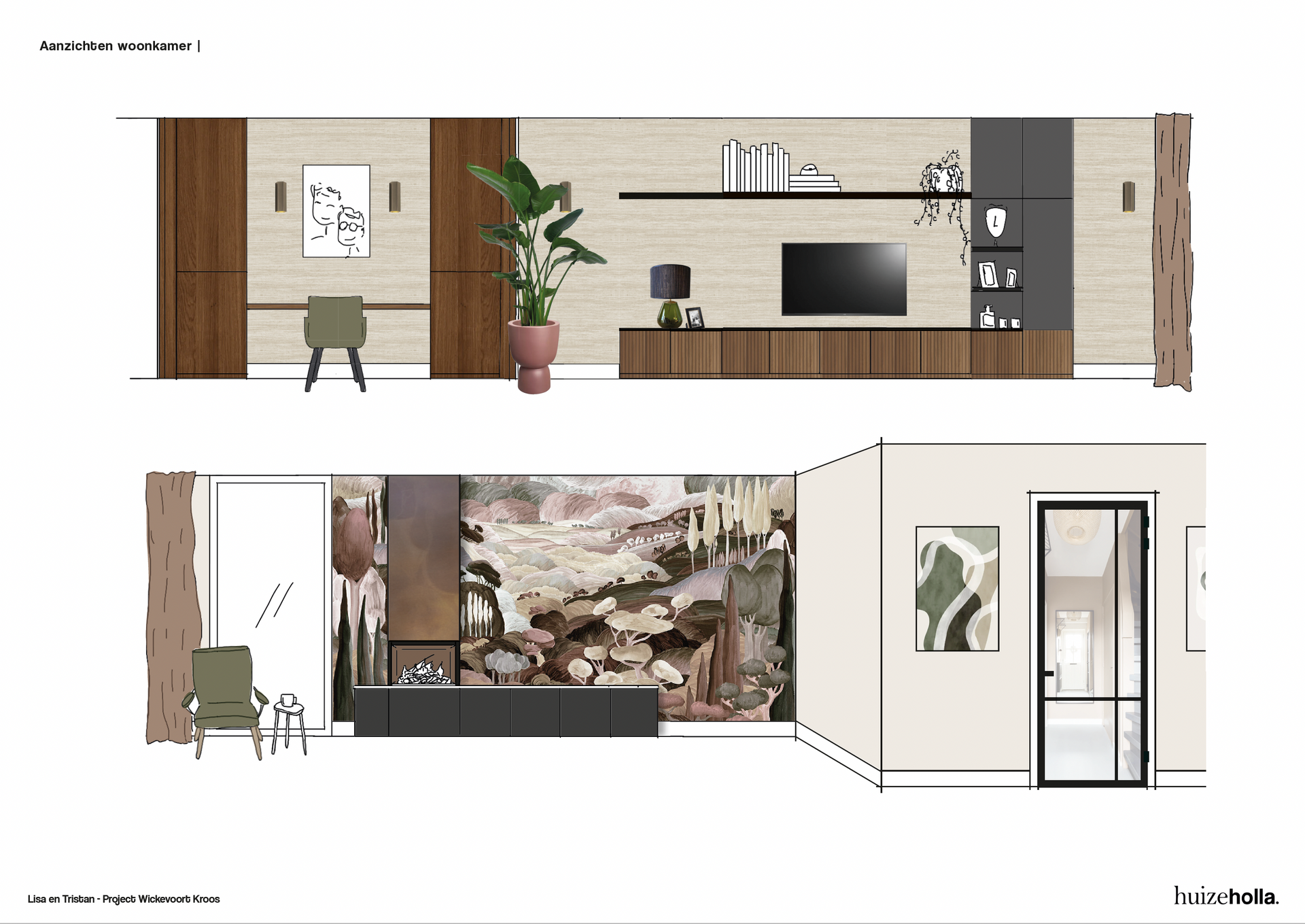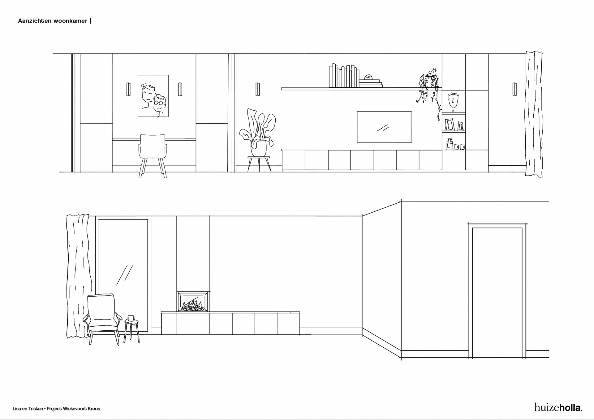 Zo komt er in de woonkamer een dubbele functie, nml een ruime plek voor de tv én een heerlijke plek bij het (elektrische) haardje. Door een modulair en speels zitelement in het midden van de kamer te plaatsen verbind je beide functies en voelt de ruimte als een mooi geheel. Ook de leefkeuken is groot van formaat. Naast een royale keuken met kookeiland komt er ook een gezellige vierkante tafel met zitbank. Je kunt je al goed voorstellen hoe er vriendjes door de schuifpui aan komen waaien om aan te schuiven voor tosti's op woensdagmiddag.