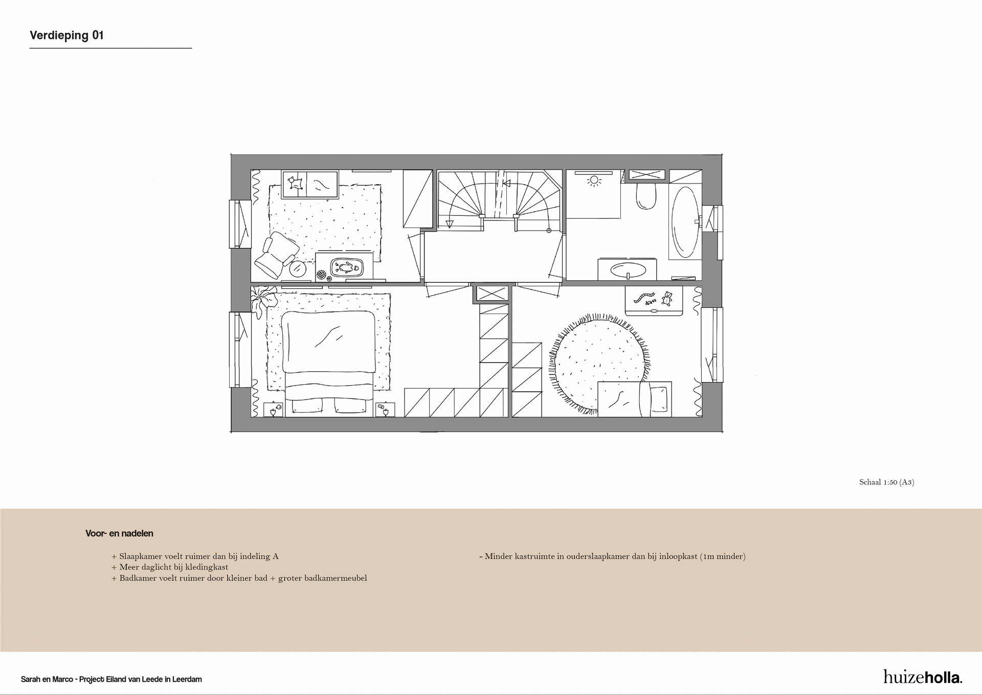 Ook voor de ouderslaapkamer en de twee meidenkamers is een plan uitgewerkt. Op deze manier konden ze zelf direct na sleuteloverdracht al aan de slag met schilderen, behangen, kasten kopen etc.